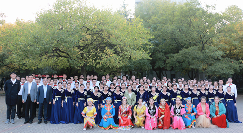 演出现场,参与合唱的师生们怀揣对党和祖国的热爱,将一首首铿锵有力、脍炙人口的经典红歌在繁星广场唱响。我院由朗诵,歌声与舞蹈组成歌曲《爱我中华》,惊艳了整个演出现场。赵卫东、卫文学、黄玲和赵晓燕老师领诵,“七十年的耕耘,七十年的收获;一路风雨兼程,一路沧桑巨变;历史见证了中华民族的步步铿锵,时代昭示着祖国的繁荣富强……”。随着充满真情的声声朗诵,表达了所有师生们的共同心声:新中国七十华诞,我们大步向前,走向复兴,创造辉煌。随后,由陈欣老师指挥,孟兴旗、李忻凌领唱,全体同学以饱满的热情、嘹亮的歌声共同唱响了中华儿女一家亲,向全场师生传递了祖国富强、人民幸福的喜悦之情。身着不同民族服饰的舞者们翩翩起舞,他们用舞蹈表为祖国献上最珍贵的礼物。