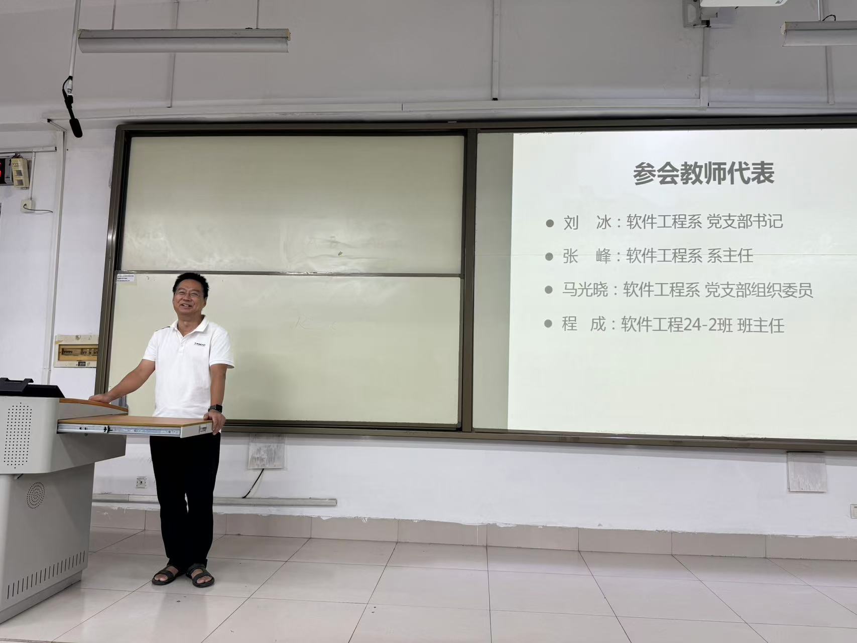 9月25日晚,软件工程专业2024级本科生见面会在S1-403举行。软件工程系党支部书记刘冰、系主任张峰、软件工程2024级班主任代表程成,以及软件工程2021级员工代表孟正、许维杰、孙宁轩、李闯出席本次见面会,软件工程专业2024级全体新生参加见面会。
