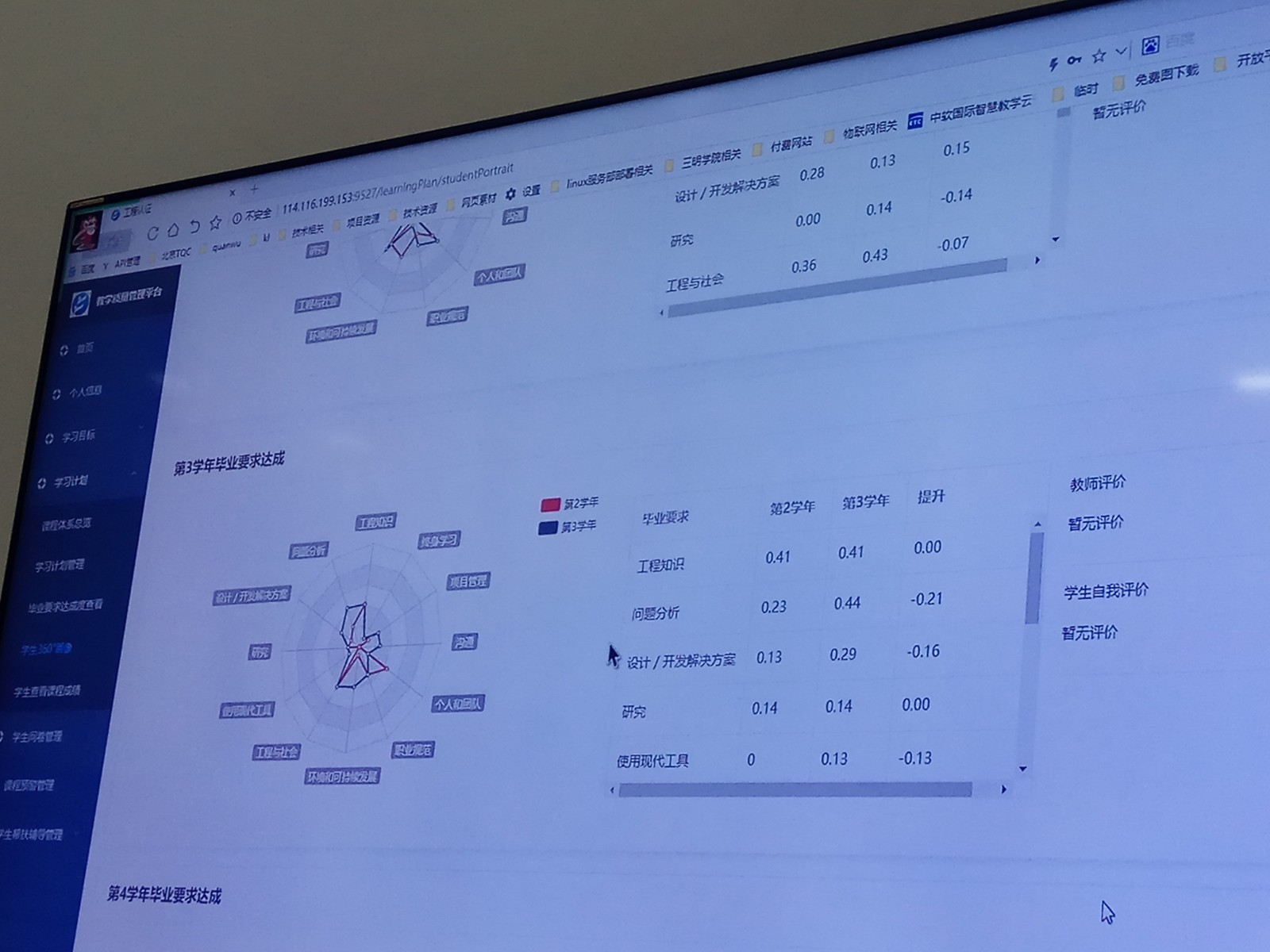 中软国际蔡工介绍了中软国际围绕工程教育认证的核心理念和实施过程打造的在线平台。该平台为专业的培养目标、毕业要求与内涵观测点、课程体系等各要素,以及教学过程的实施、评价等关键环节提供了信息化支持。平台功能完善,覆盖了工程教育认证的各个环节,受到了参会领导和教师的认可。