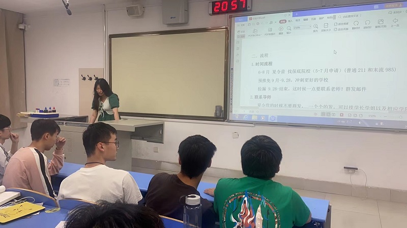 张智升和夏春星同学从目标院校选择、专硕学硕选择、课程复习等方面一一分享了自己的经验。赵晓旭同学分享了研究生推免、考研夏令营、联系导师等方面的经验。