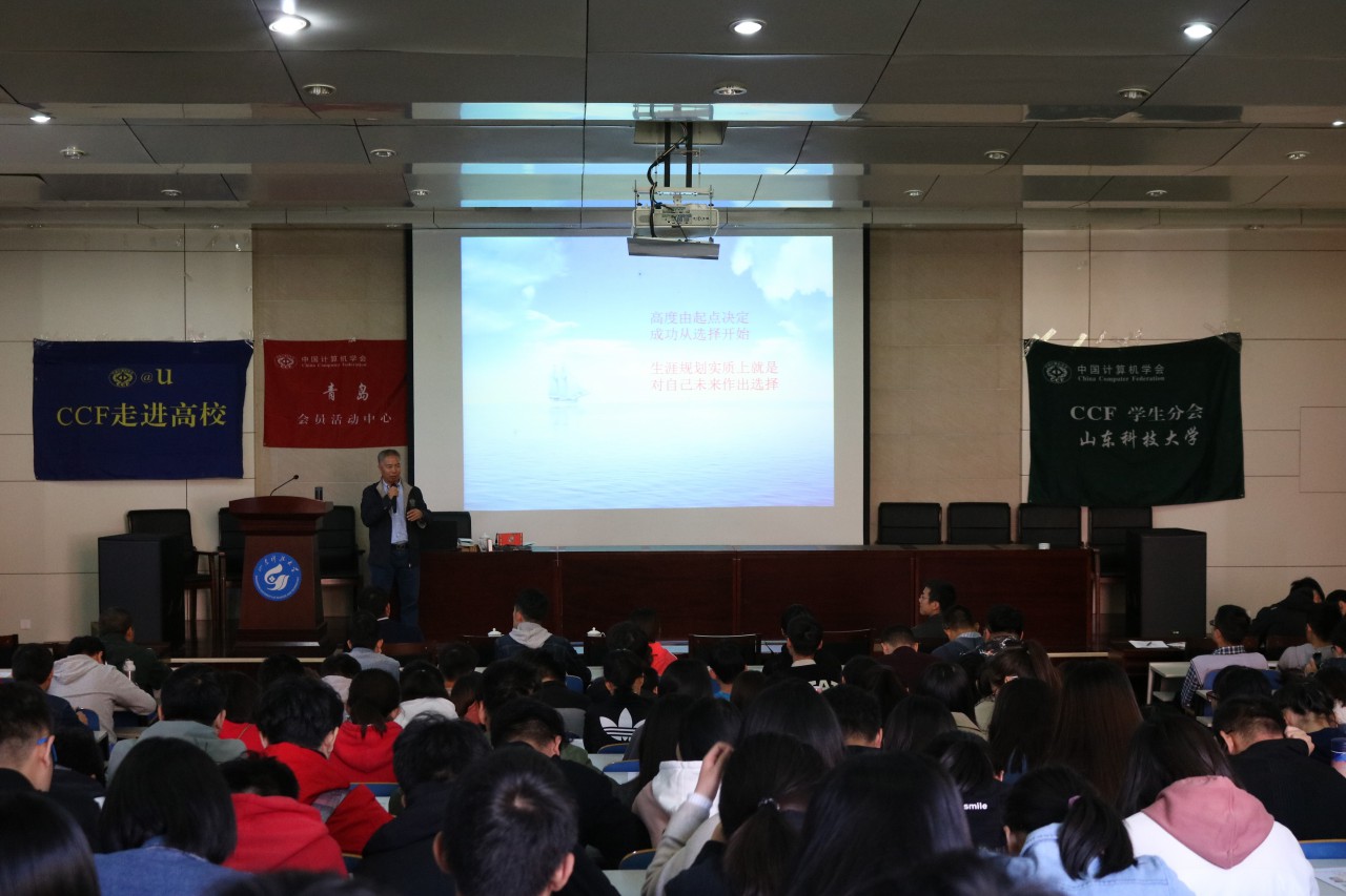 报告会伊始,全体师生一同观看了CCF的宣传片,樊建聪简要介绍了“CCF走进高校”活动以及CCF优秀讲者臧根林博士。随后,臧根林博士满怀激情地开始了本次报告。讲座中,臧博士讲述了自己的求员工涯到自主创业的亲身经历,臧博士在经历了求学之路的艰辛,创业道路上遇到的各种困难和风险后,一步步走向成功。臧博士分享的人生经历与感悟,让同学们对自己的人生目标有了更深一步的认识,收获了坚韧不拔、积极乐观,不惧挫折、临危不乱,有的放矢、目光高远等无数宝贵的精神财富。其间,臧博士还以提问的方式与同学们热情互动,同学们争先恐后回答问题,现场氛围十分活跃。报告会后,樊建聪对本次活动作出总结,并再次表达了对臧博士的感谢。